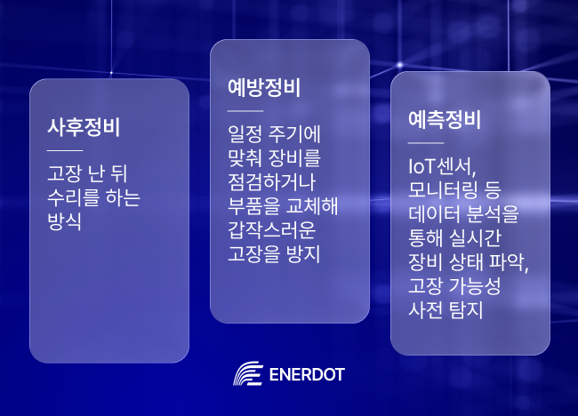 최근 O&M의 핵심은 ‘얼마나 빨리 고치느냐’가 아니라 ‘고장이 나기 전에 감지할 수 있느냐’로 이동하고 있습니다. 즉, IoT 센서와 데이터 분석으로 설비 이상을 사전에 탐지해, 꼭 필요한 시점에 정비를 수행하는 ‘예측정비’가 주목 받고 있는 것이죠. 예측정비는 불필요한 점검을 줄이고, 다운타임을 최소화하며, 결과적으로 운영비 절감과 자산 가치 보존, 수익 안정성 확보를 동시에 확보할 수 있습니다.